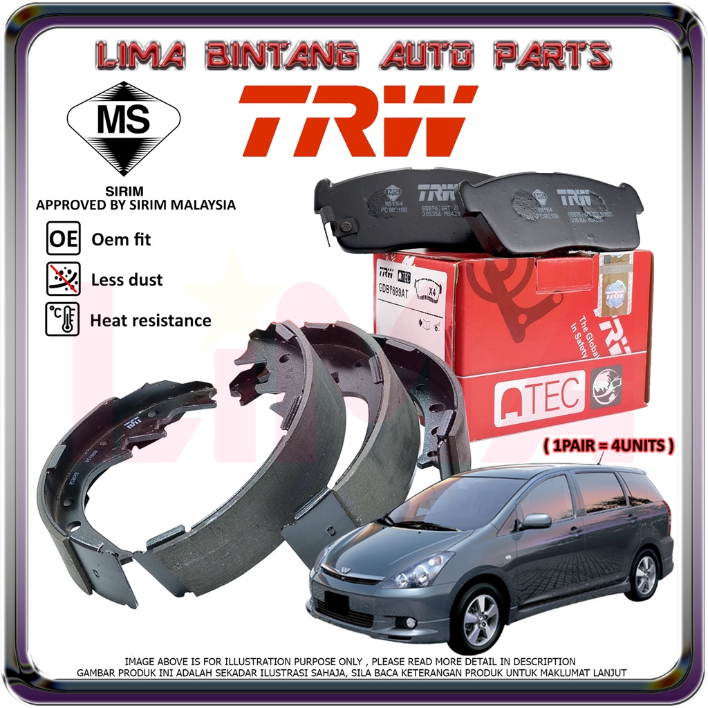 Toyota Wish Ane10 Zne10 Front Rear Brake Pads Disc Brake Pad Hand Brake Lining Shoe Trw Original 2003 2008 Shopee Malaysia
